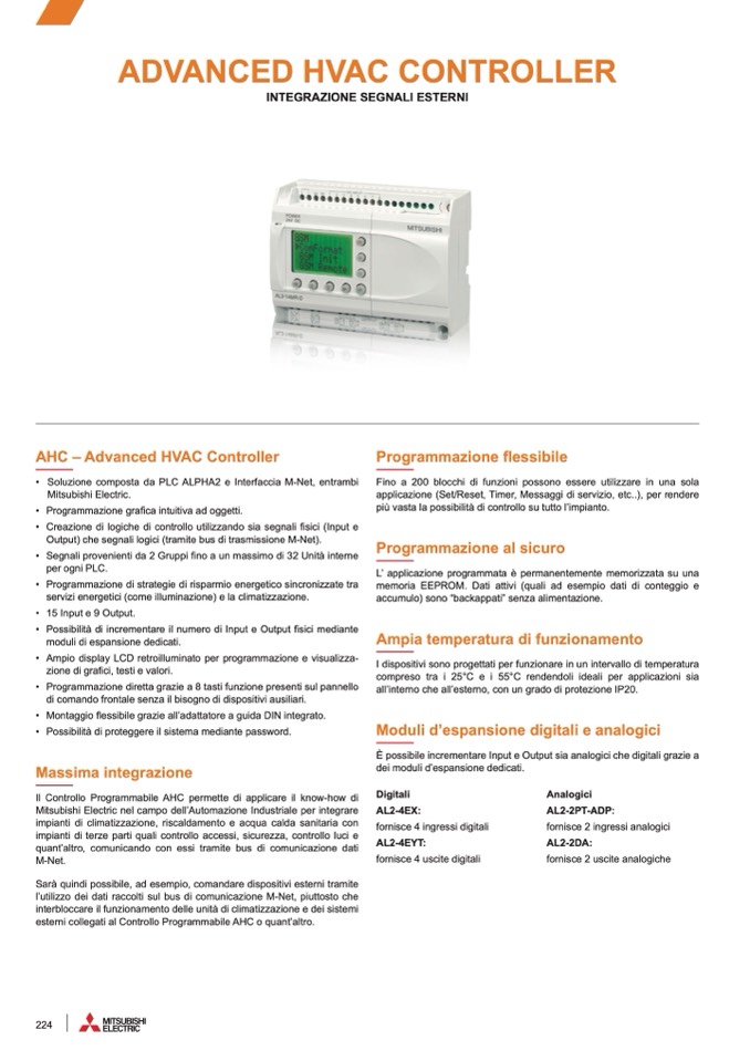 • Soluzione composta da PLC ALPHA2 e Interfaccia M-Net, entrambi
