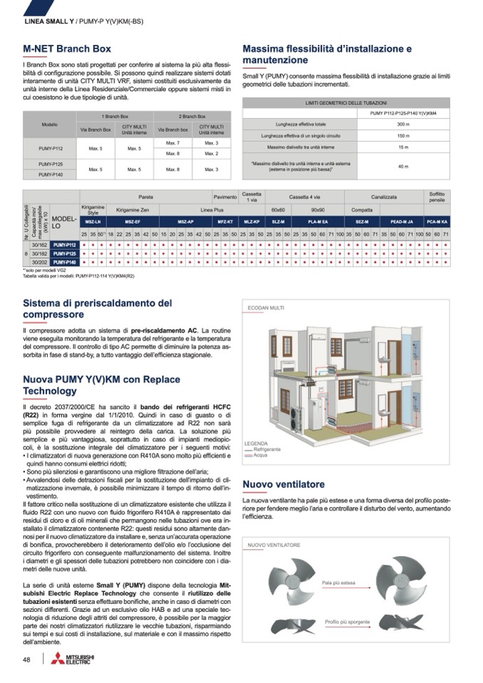 La serie di unità esterne Small Y (PUMY) dispone della tecnologia Mit-