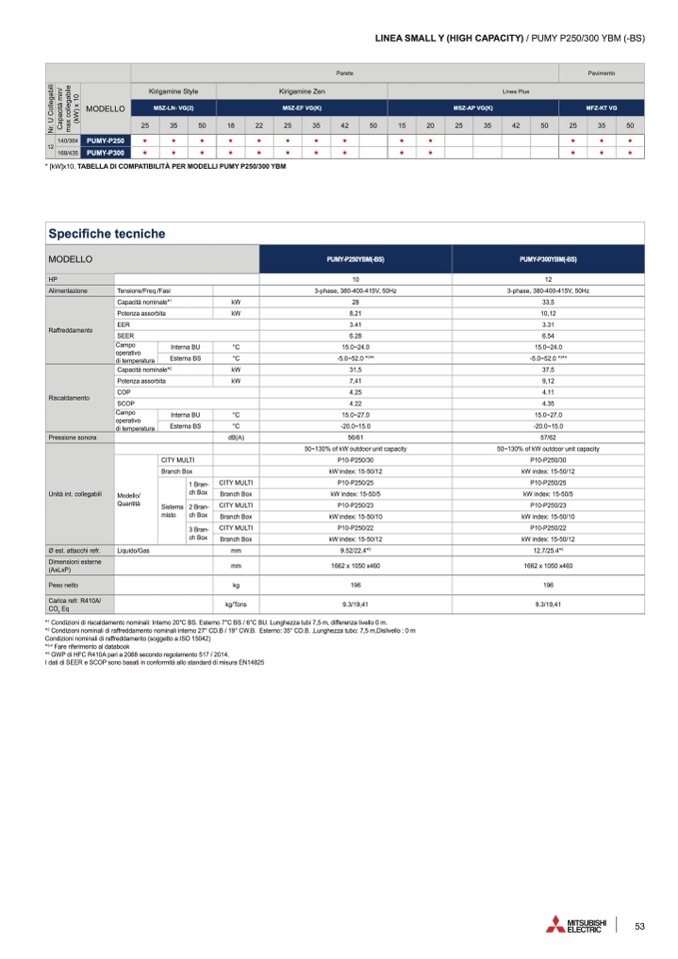 * [kW]x10, TABELLA DI COMPATIBILITÀ PER MODELLI PUMY P250/300 YBM