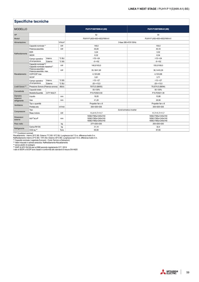 I dati di SEER e SCOP sono basati in conformità allo standard di misura EN14825
