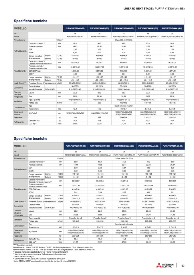 I dati di SEER e SCOP sono basati in conformità allo standard di misura EN14825