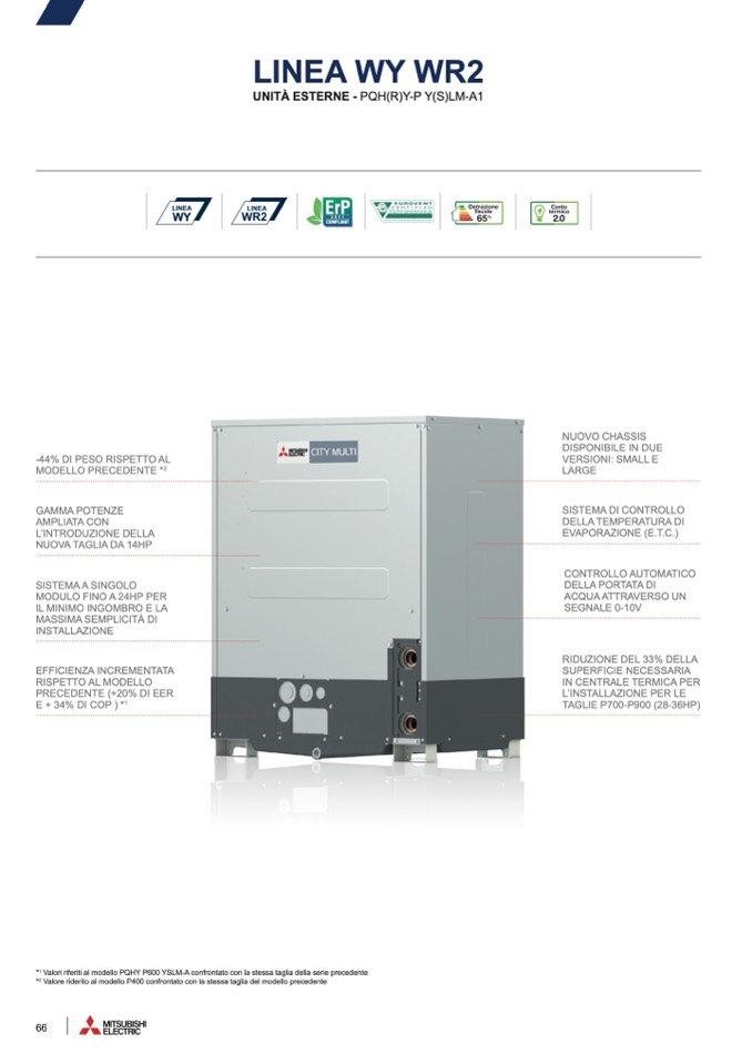 Valori riferiti al modello PQHY P600 YSLM-A confrontato con la stessa taglia della serie precedente