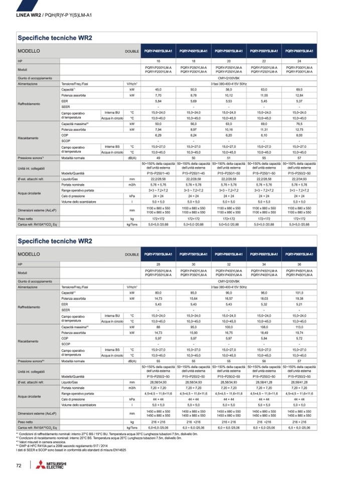 I dati di SEER e SCOP sono basati in conformità allo standard di misura EN14825