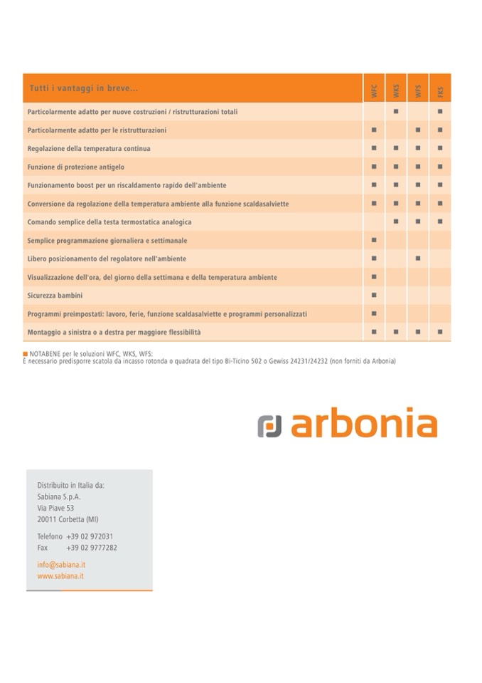 È necessario predisporre scatola da incasso rotonda o quadrata del tipo Bi-Ticino 502 o Gewiss 24231/24232 (non forniti da Arbonia)