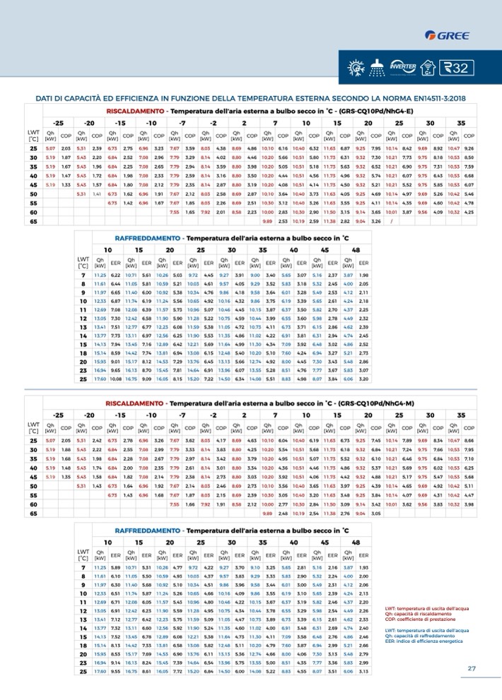 RISCALDAMENTO - Temperatura dell’aria esterna a bulbo secco in °C - (GRS-CQ10Pd/NhG4-E)