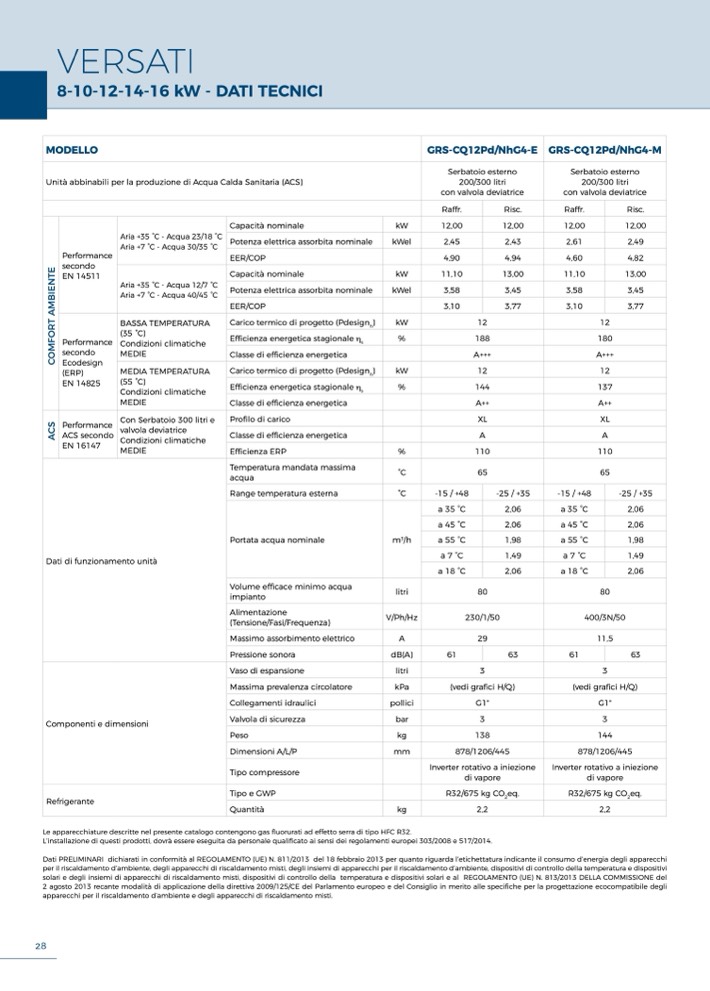 Le apparecchiature descritte nel presente catalogo contengono gas fluorurati ad effetto serra di tipo HFC R32.