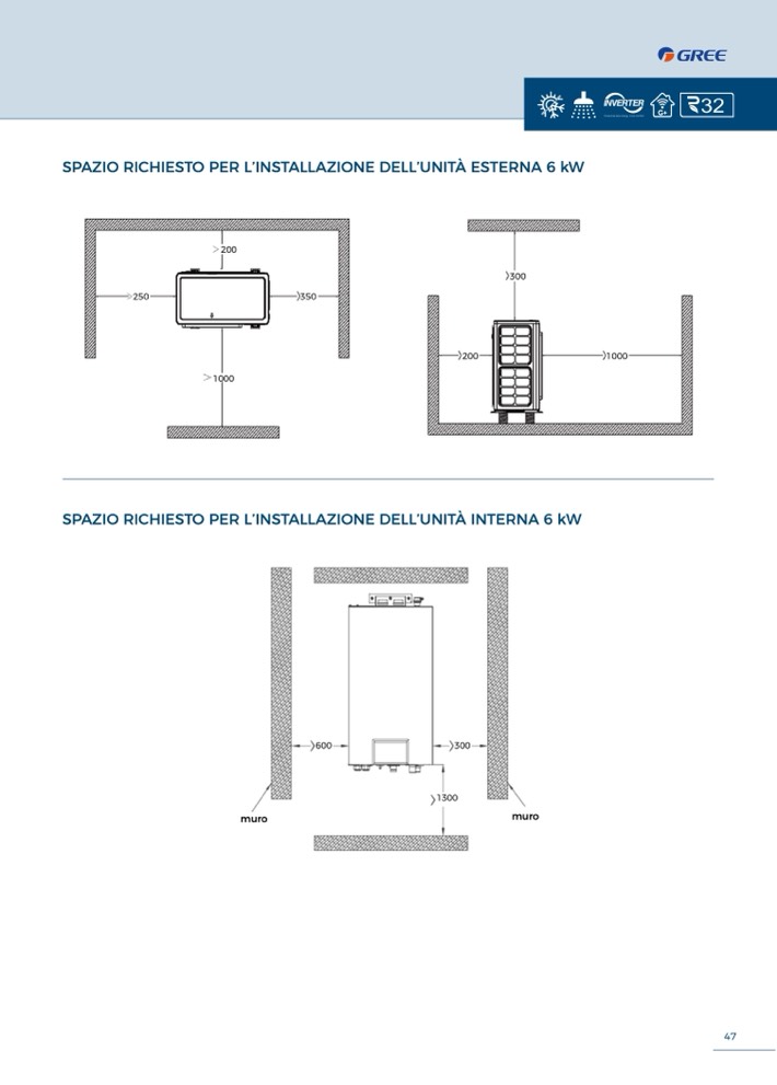 SPAZIO RICHIESTO PER L’INSTALLAZIONE DELL’UNITÀ INTERNA 6 kW