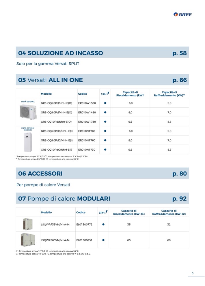 * Temperatura acqua 30 °C/35 °C, temperatura aria esterna 7 °C b.s./6 °C b.u.