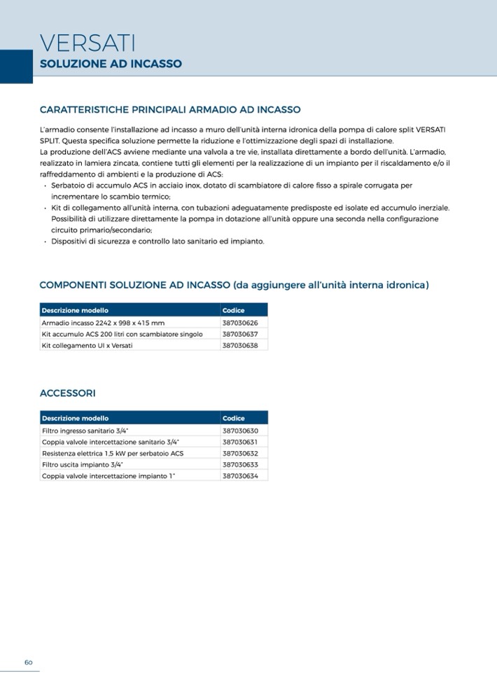 COMPONENTI SOLUZIONE AD INCASSO (da aggiungere all’unità interna idronica)