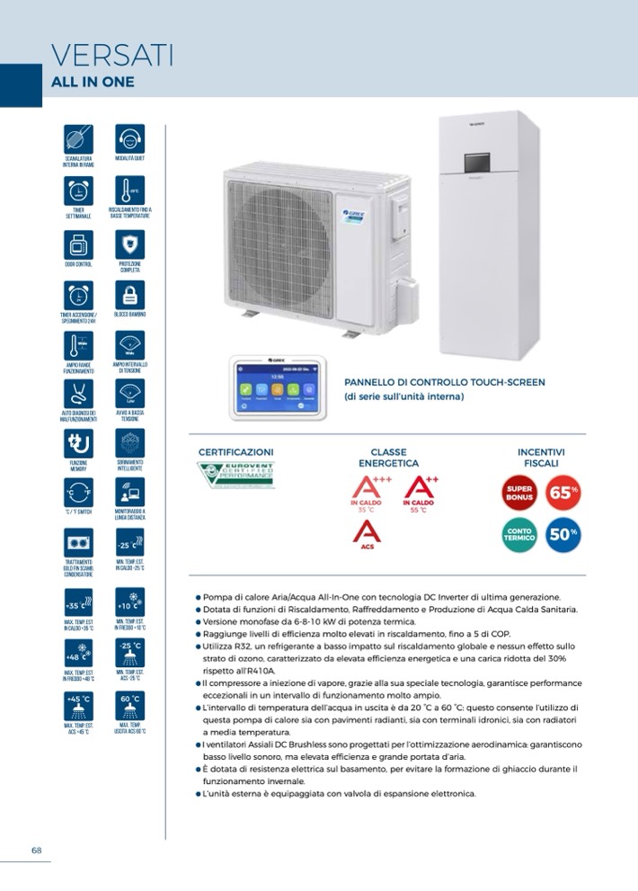 Pompa di calore Aria/Acqua All-In-One con tecnologia DC Inverter di ultima generazione.