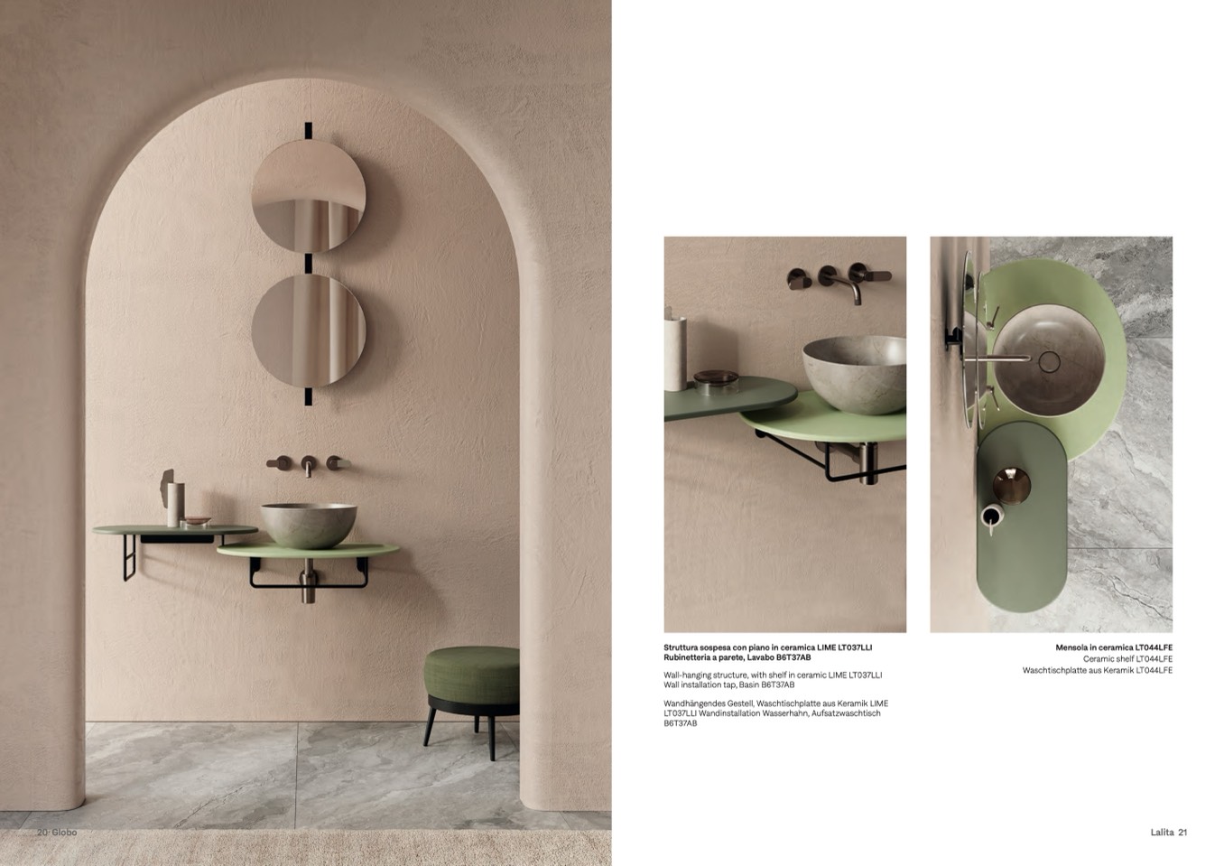 Wandhängendes Gestell, Waschtischplatte aus Keramik LIME