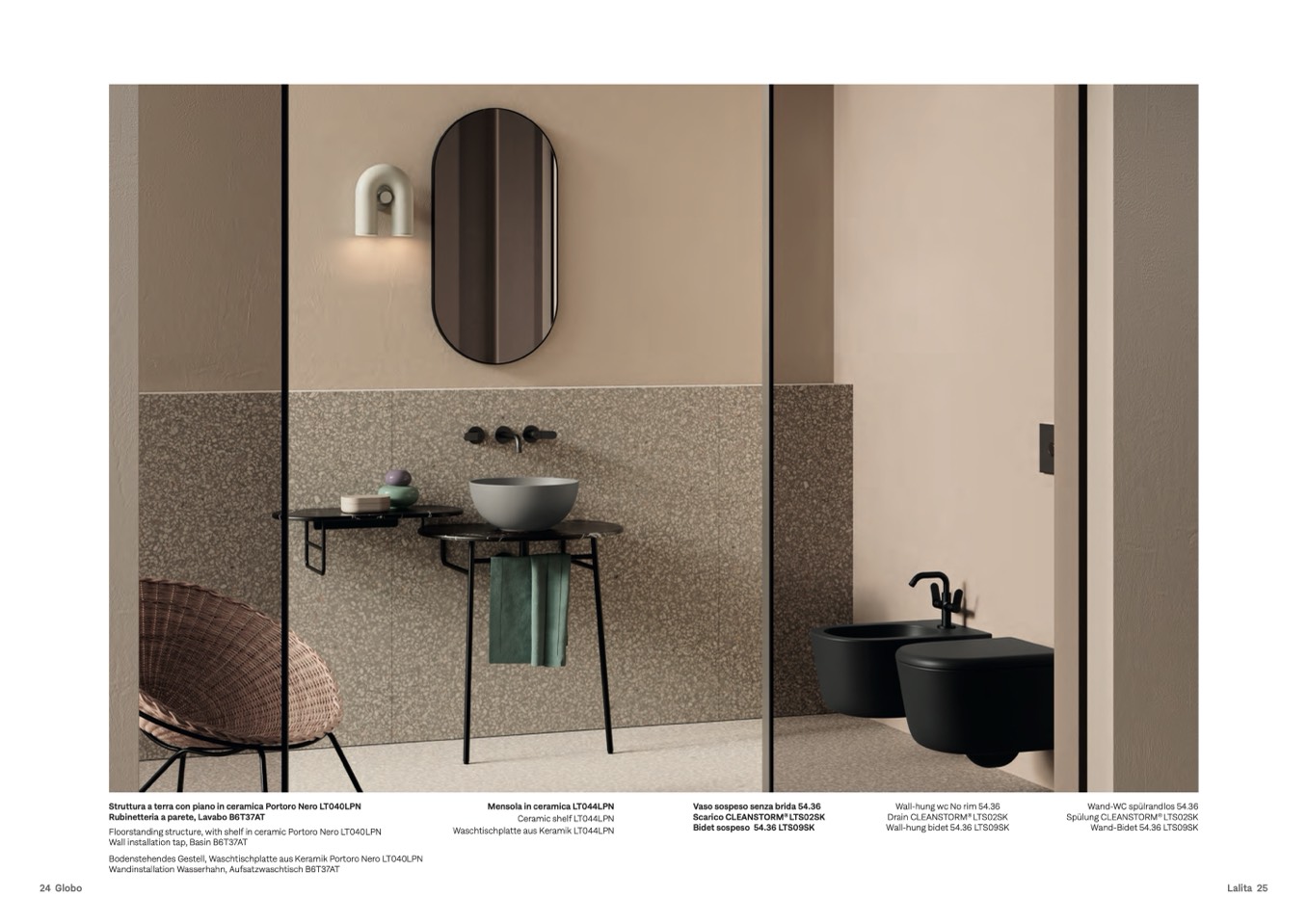 Bodenstehendes Gestell, Waschtischplatte aus Keramik Portoro Nero LT040LPN