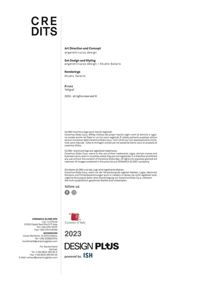 reserved. All images contained in this price list are CERAMICA GLOBO ‘s property.