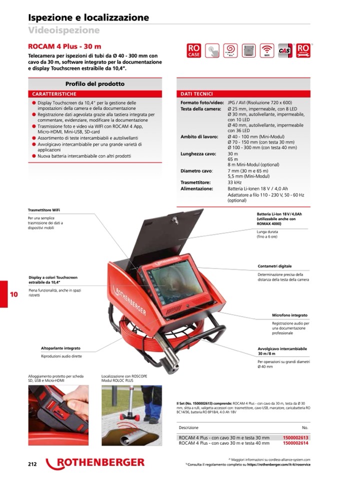 Il Set (No. 1500002613) comprende: ROCAM 4 Plus - con cavo da 30 m, testa da Ø 30