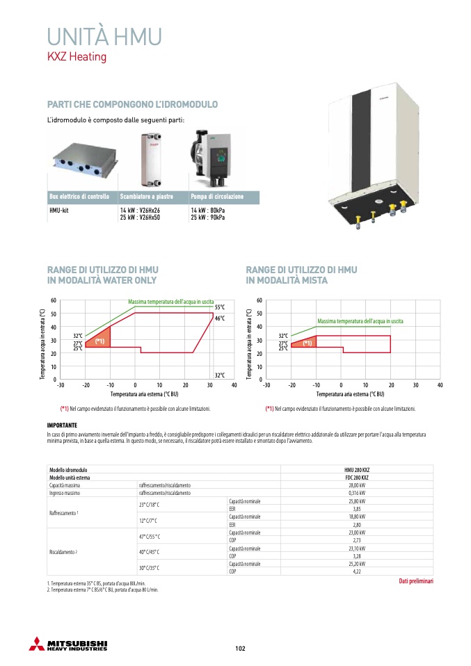 1. Temperatura esterna 35° C BS, portata d'acqua 80L/min.