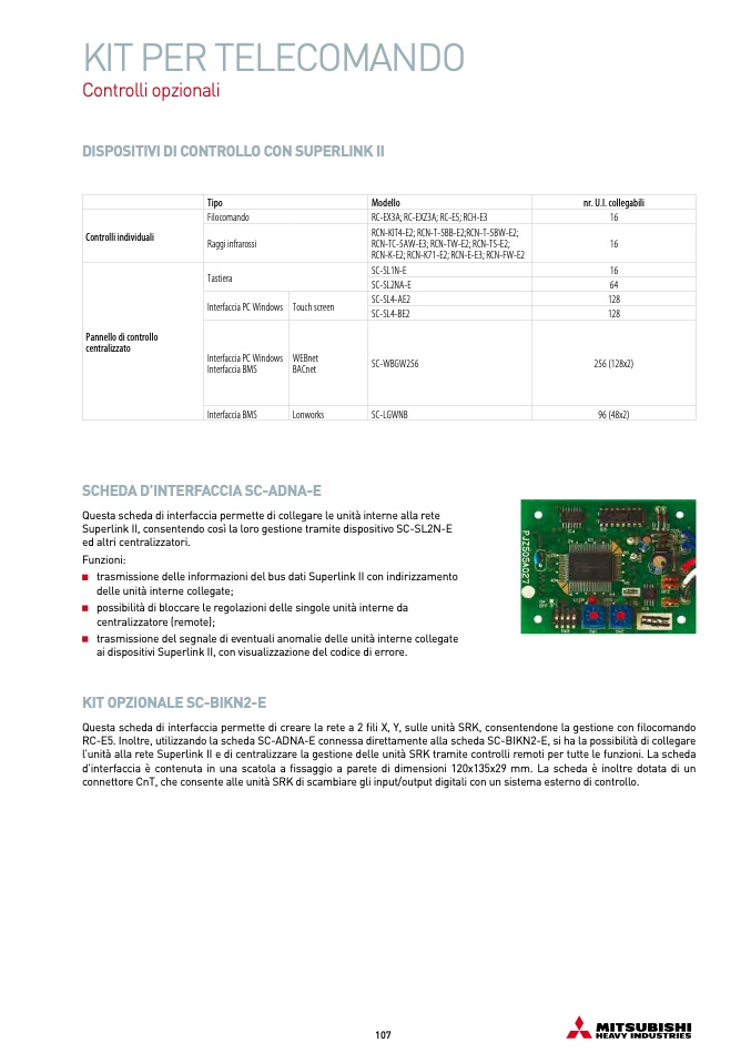 RC-E5. Inoltre, utilizzando la scheda SC-ADNA-E connessa direttamente alla scheda SC-BIKN2-E, si ha la possibilità di collegare