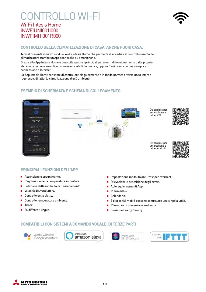 Grazie alla App Intesis Home è possibile gestire i principali parametri di funzionamento dalla propria