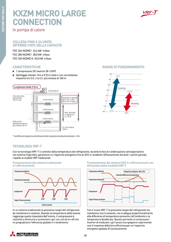 Con la tecnologia VRF-T il controllo della temperatura del refrigerante, durante le fasi di condensazione ed evaporazione