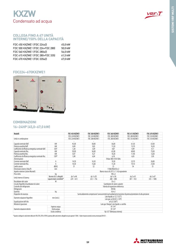 * Quando si collegano le unità interne della serie: FDK, FDFL, FDFU o FDFW, la potenza delle unità interne collegabili non può superare il 130%. 1. Valore misurato secondo la norma armonizzata EN14511.