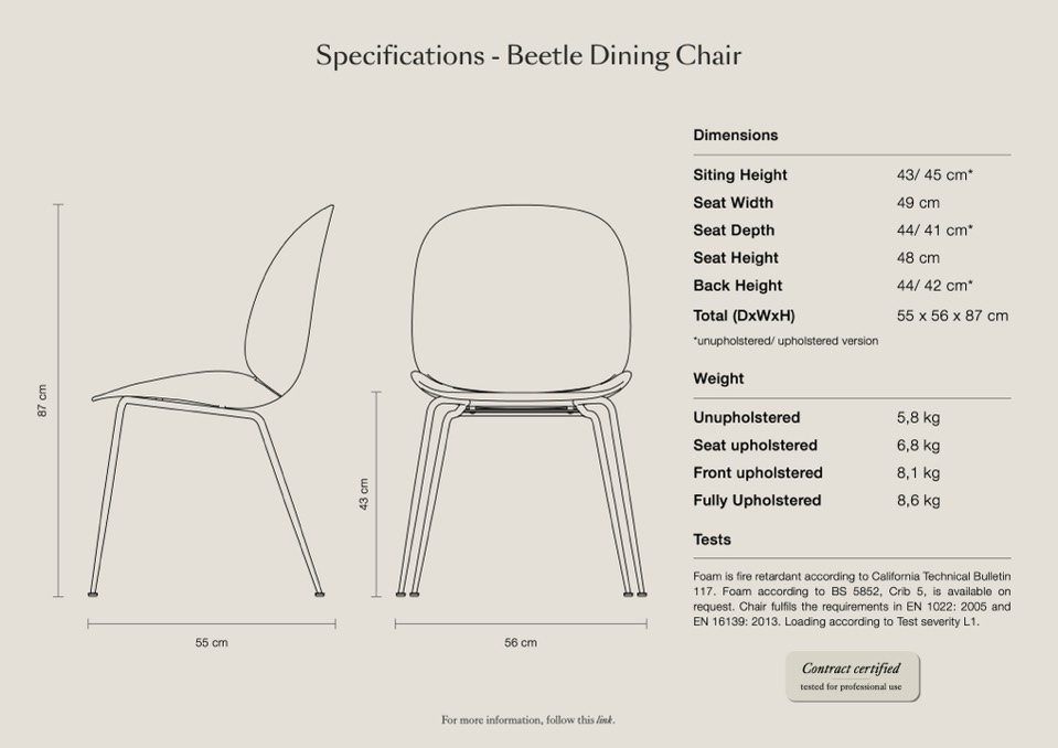 request. Chair fulfils the requirements in EN 1022: 2005 and
