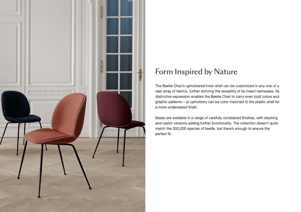 distinctive expression enables the Beetle Chair to carry even bold colors and