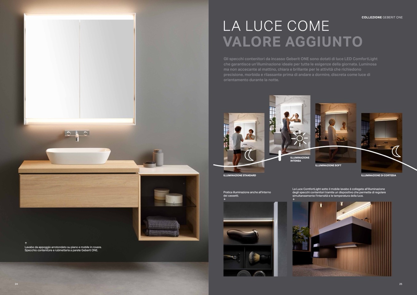 Specchio contenitore e rubinetteria a parete Geberit ONE.
