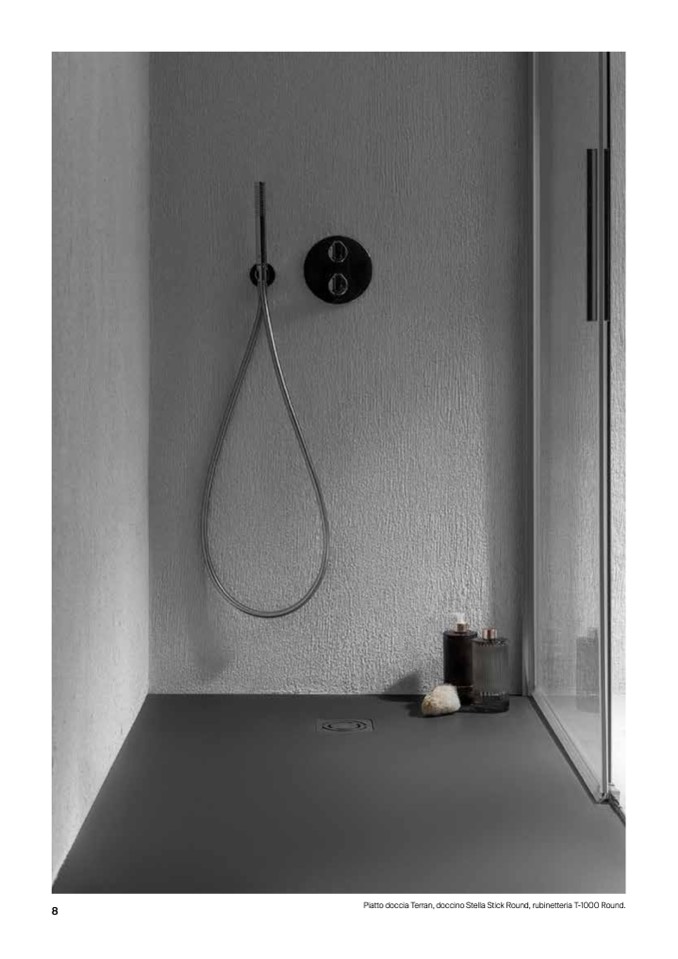 Piatto doccia Terran, doccino Stella Stick Round, rubinetteria T-1000 Round.