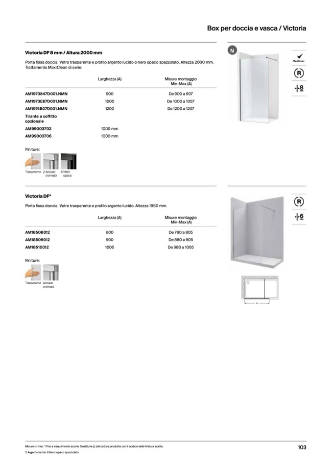 Misure in mm. * Fino a esaurimento scorte. Sostituire (.) del codice prodotto con il codice della finitura scelta: