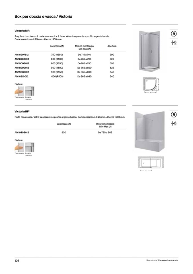 Porta fissa vasca. Vetro trasparente e profilo argento lucido. Compensazione di 25 mm. Altezza 1500 mm.