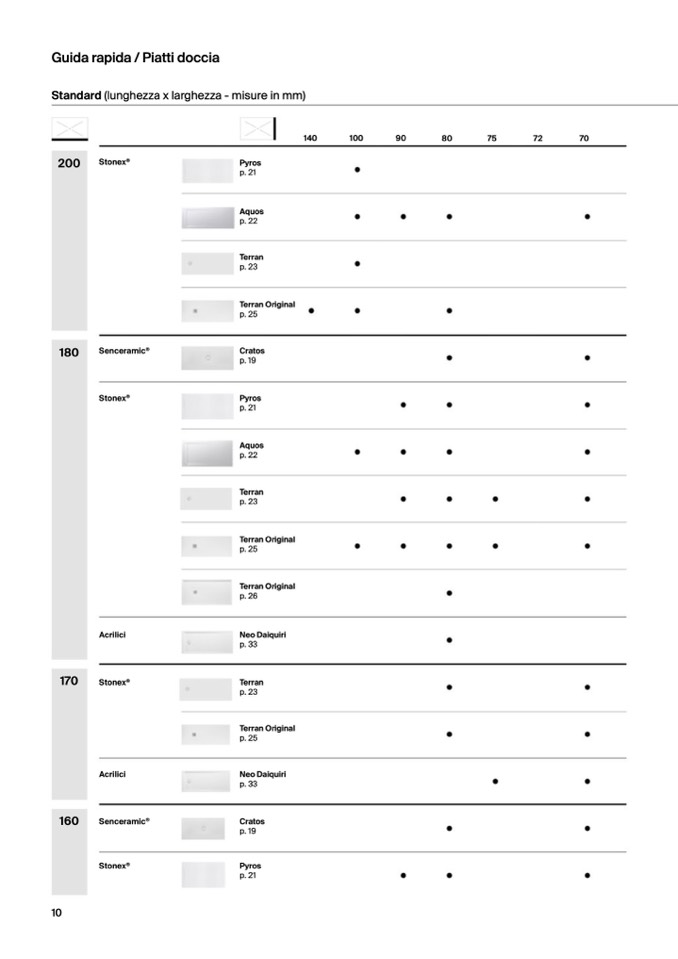 Standard (lunghezza x larghezza - misure in mm)
