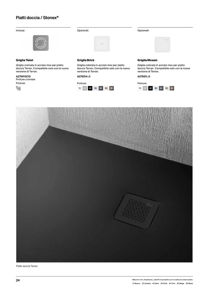 10 Bianco 20 Ardesia 40 Nero 63 Perla 64 Onix 65 Beige 66 Moka