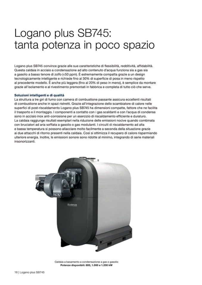 superfici di post-riscaldamento Logano plus SB745 ha dimensioni compatte, fattore che ne facilita