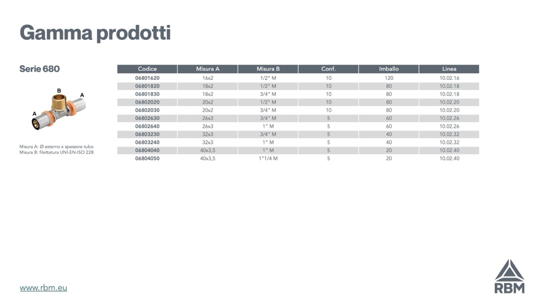Misura B: filettatura UNI-EN-ISO 228