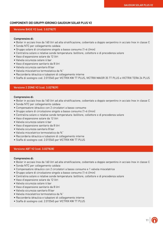COMPONENTI DEI GRUPPI IDRONICI GAUDIUM SOLAR PLUS V2