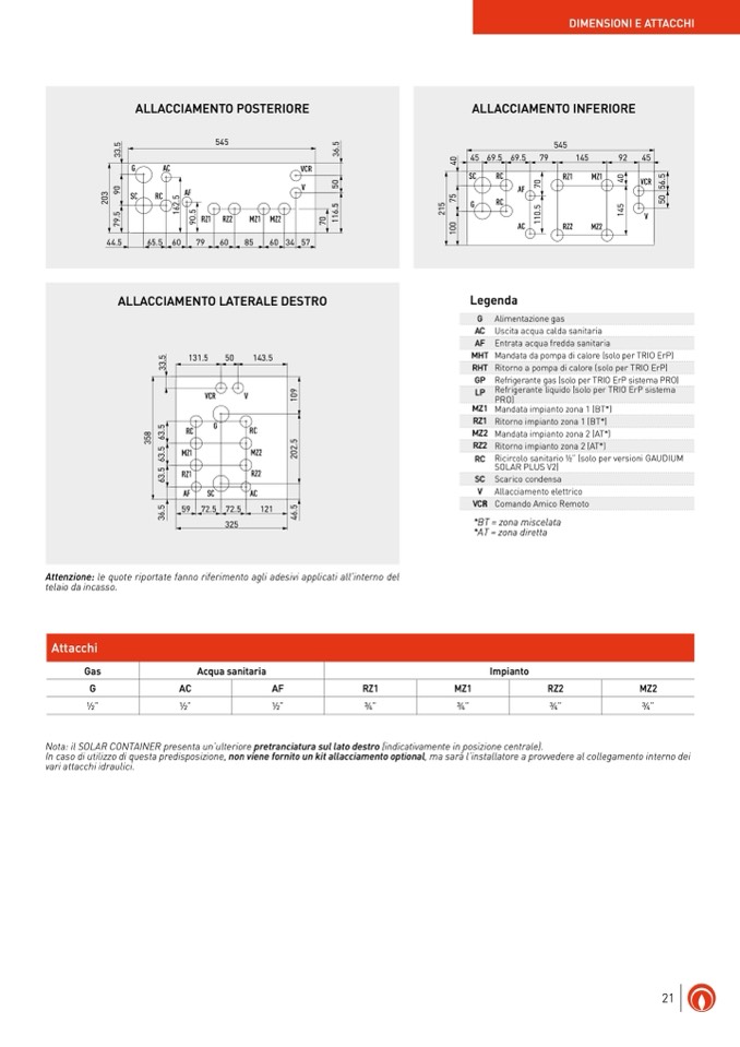 In caso di utilizzo di questa predisposizione, non viene fornito un kit allacciamento optional, ma sarà l’installatore a provvedere al collegamento interno dei