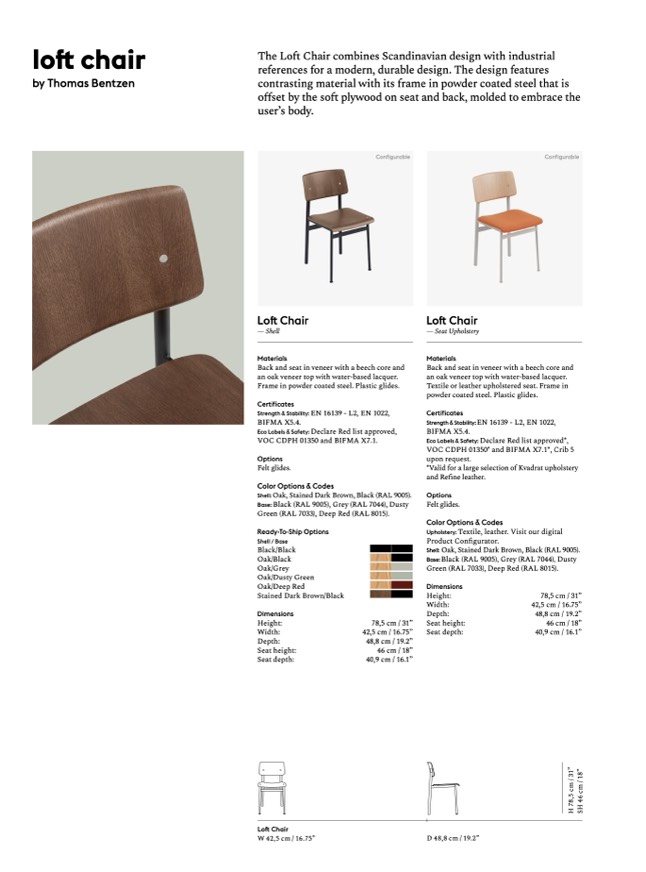 Shell: Oak, Stained Dark Brown, Black (RAL 9005).