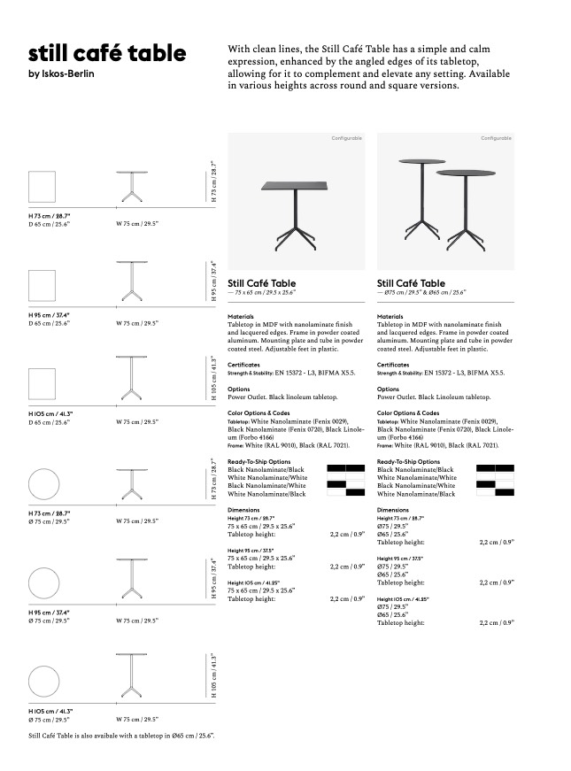 Still Café Table is also avaibale with a tabletop in Ø65 cm / 25.6”.