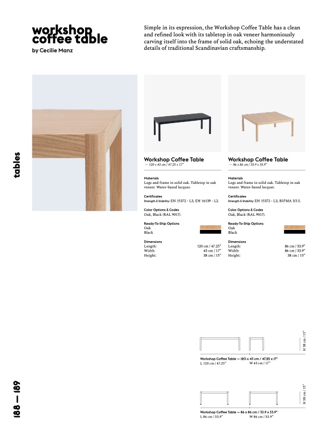 Legs and frame in solid oak. Tabletop in oak