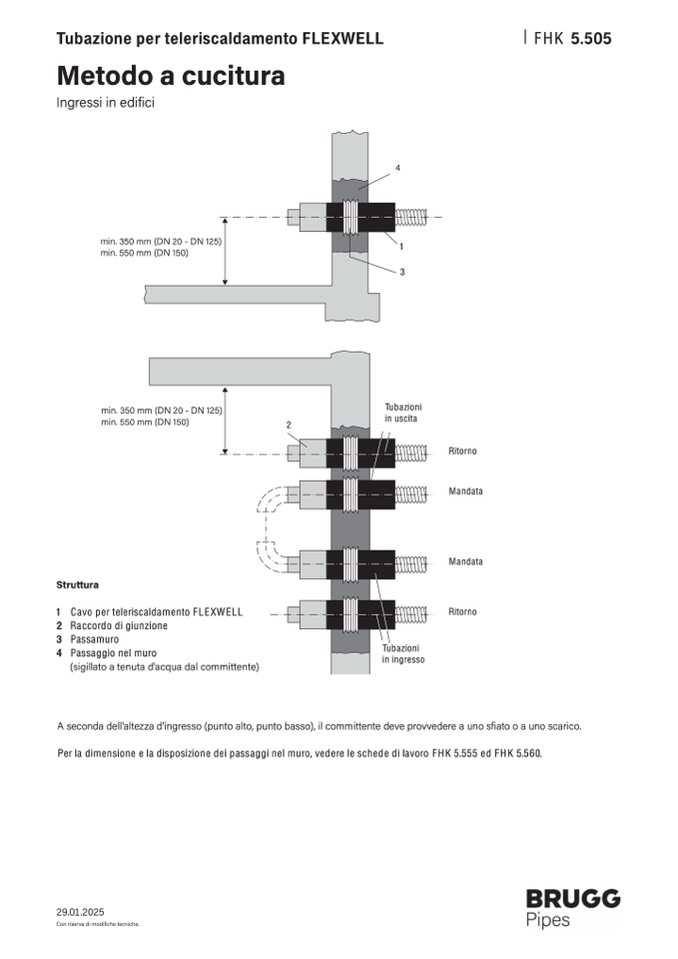 Per la dimensione e la disposizione dei passaggi nel muro, vedere le schede di lavoro FHK 5.555 ed FHK 5.560.
