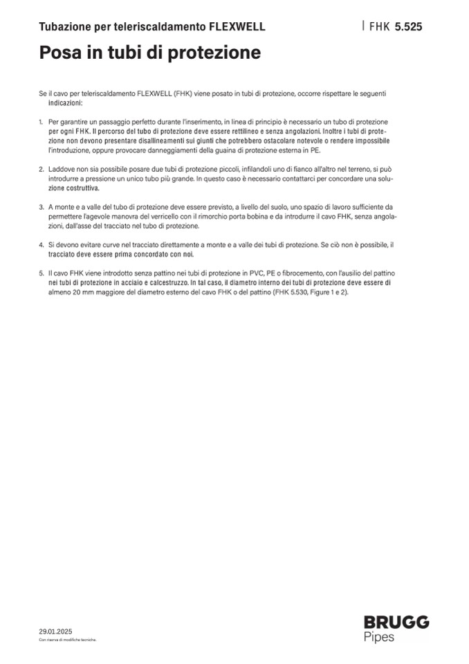 per ogni FHK. Il percorso del tubo di protezione deve essere rettilineo e senza angolazioni. Inoltre i tubi di prote