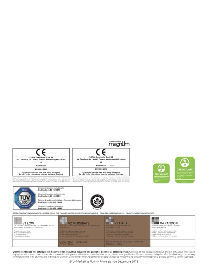 Per informazioni relative ai dati tecnici su marcatura CE vedere il sito www.florim.co