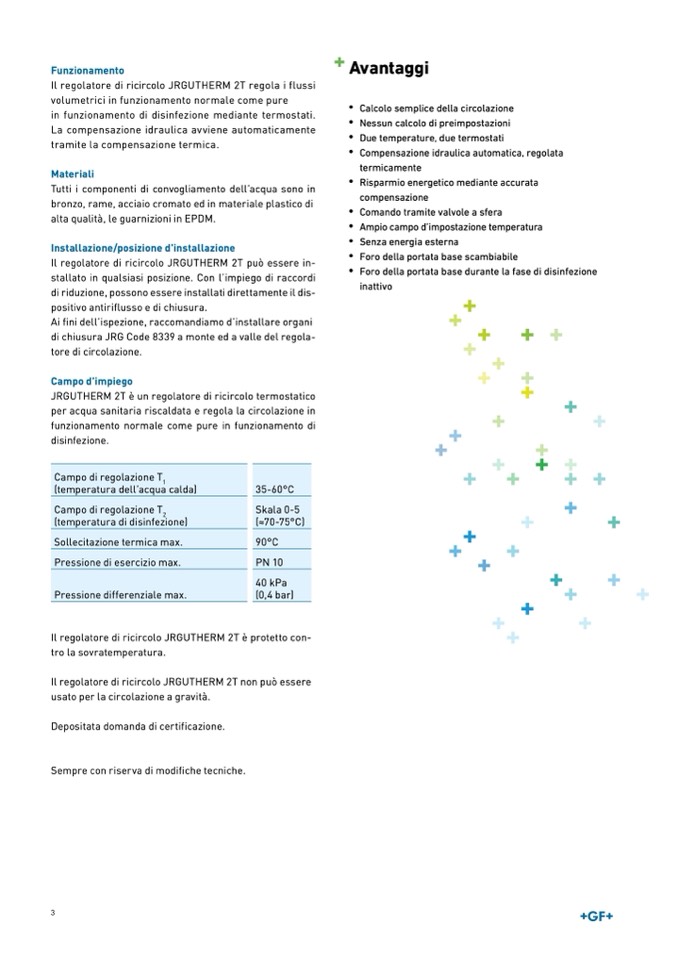 JRGUTHERM 2T è un regolatore di ricircolo termostatico