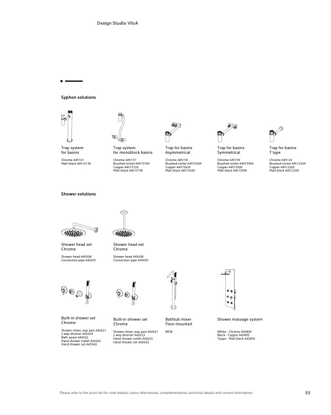 Please refer to the price list for code details, colour alternatives, complementaries, technical details and current information.