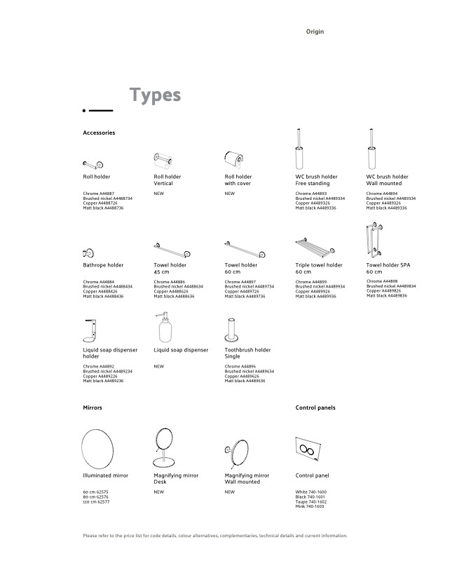 Please refer to the price list for code details, colour alternatives, complementaries, technical details and current information.
