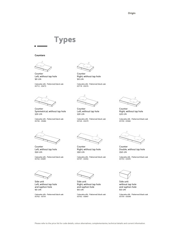 Please refer to the price list for code details, colour alternatives, complementaries, technical details and current information.