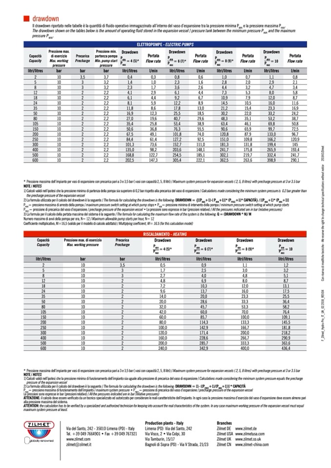 Il drawdown riportato nelle tabelle è la quantità di fluido operativo immagazzinato all’interno del vaso d’espansione tra la pressione minima P