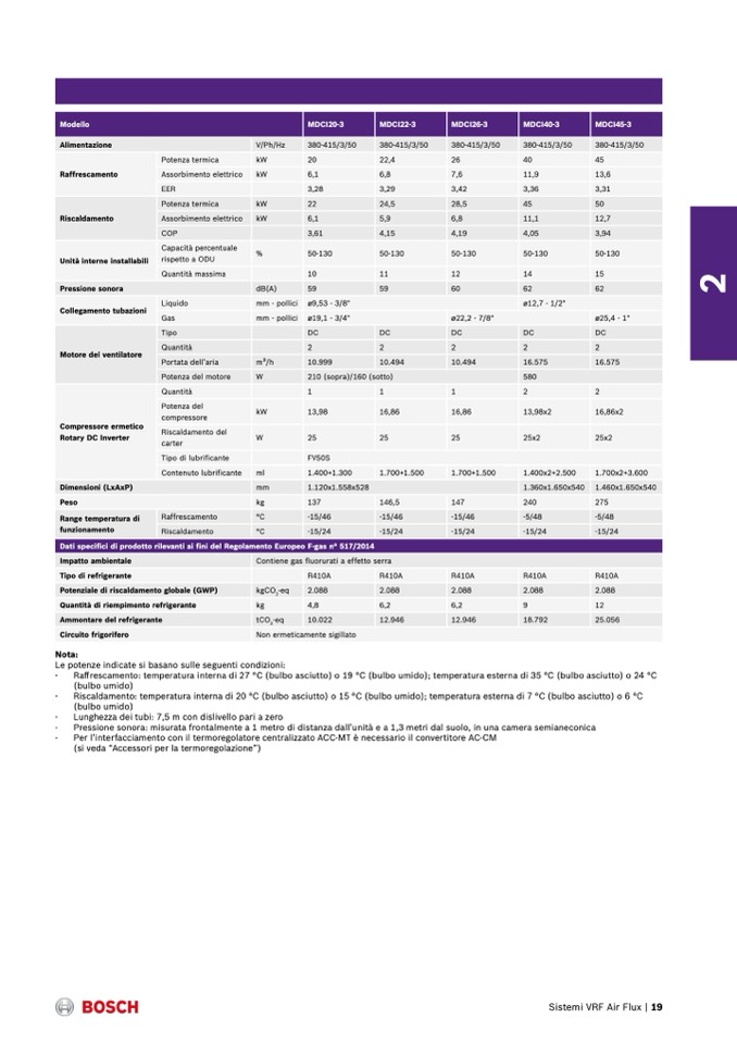 Raffrescamento: temperatura interna di 27 °C (bulbo asciutto) o 19 °C (bulbo umido); temperatura esterna di 35 °C (bulbo asciutto) o 24 °C