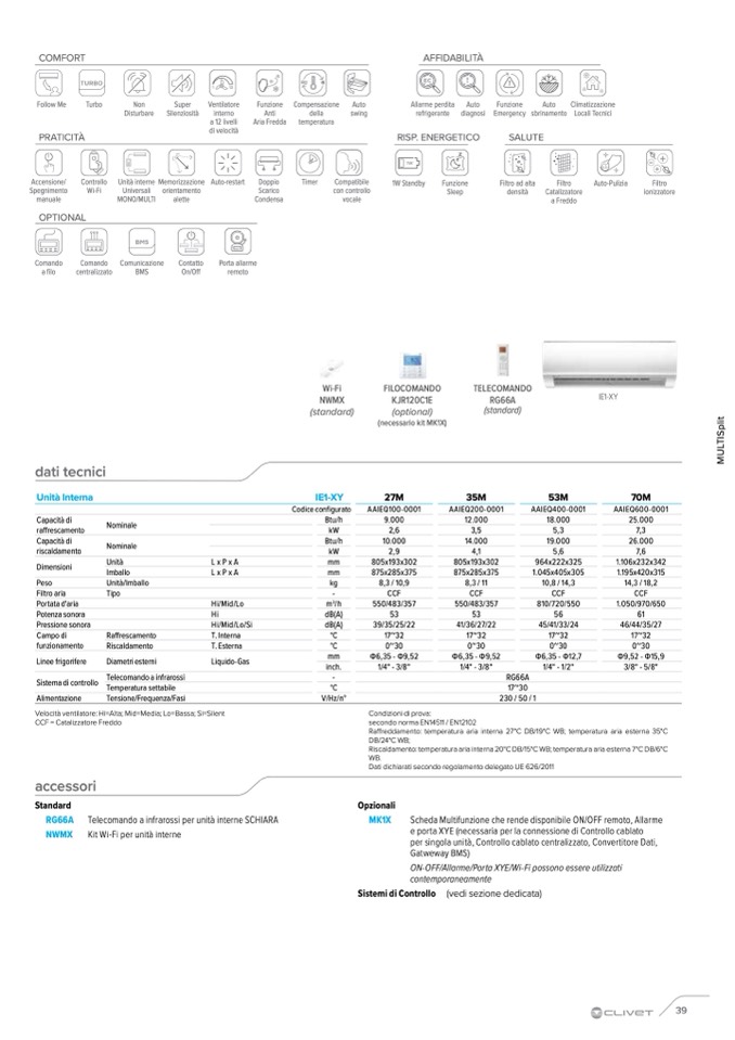 Raffreddamento: temperatura aria interna 27°C DB/19°C WB; temperatura aria esterna 35°C