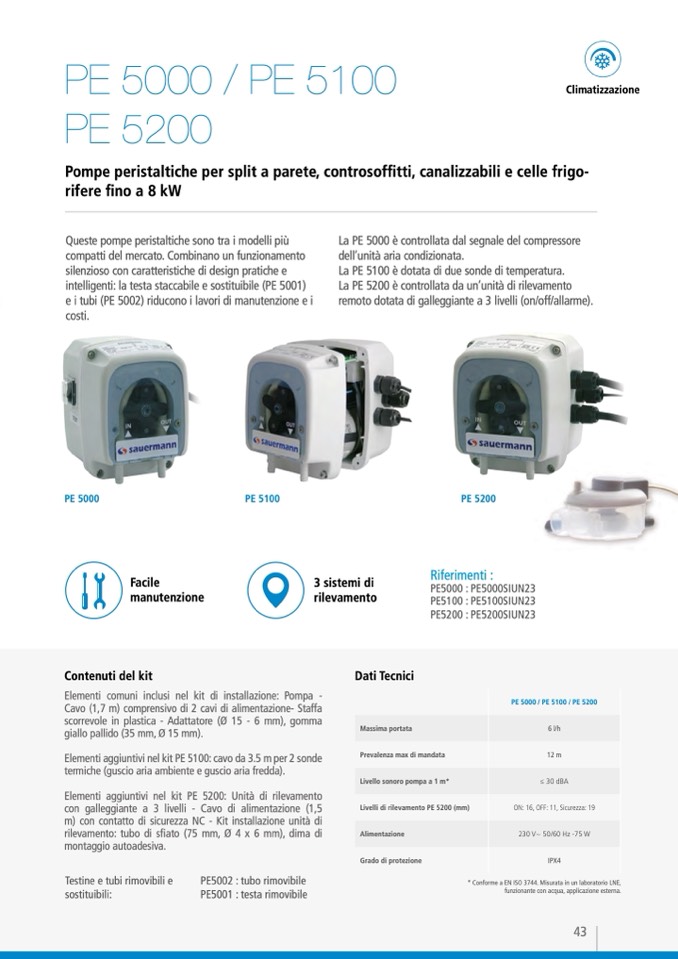 Elementi comuni inclusi nel kit di installazione: Pompa -