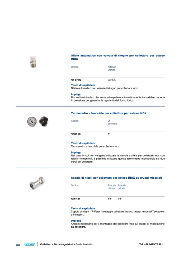 Sfiato automatico con valvola di ritegno per collettore per esteso